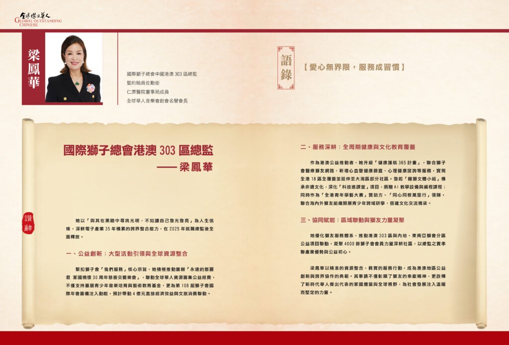 大埔宏福苑火災發生後,梁鳳華率領獅子會第一時間動員,迅速發起籌款行動以應對災民燃眉之急,累計籌得善款逾 200 萬港元。