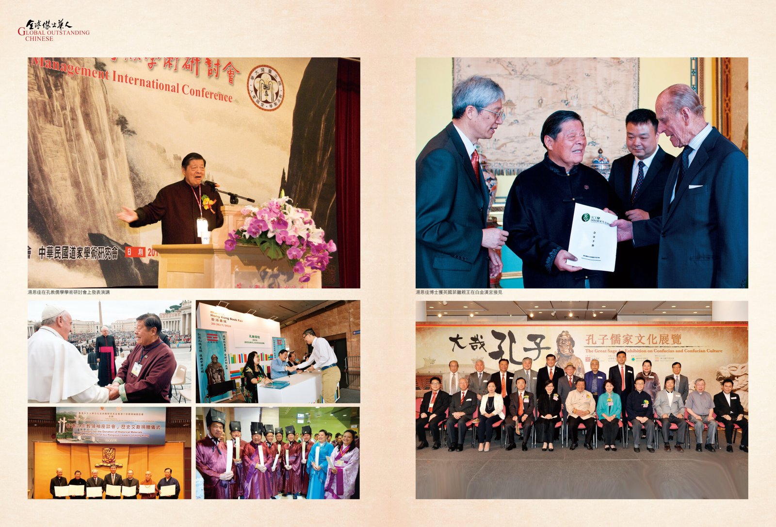 數十年來親赴全球 120 多個國家,以演講、論壇及捐像方式推廣孔子思想,撰寫演講稿逾 1,400 篇,足跡遍佈東南亞、歐洲、美洲、非洲及中東,是 20 世紀最廣泛的儒學傳播壯舉。